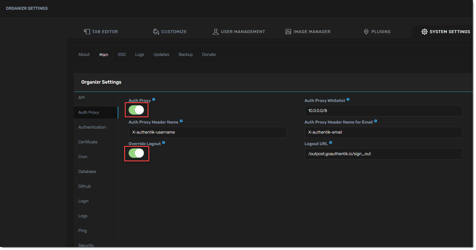 1. Enable Auth Proxy in organizr system settings > main > Auth Proxy